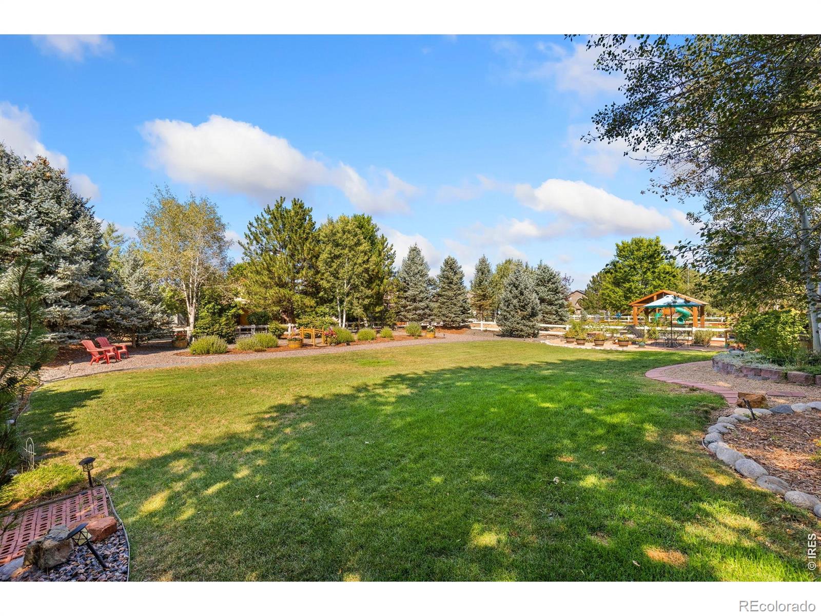 Nestled on an exceptional lot in the desirable St. Vrain Subdivision, this beautifully maintained home offers the perfect balance of space, comfort, and everyday livability and with NO Metro Taxing District. A charming covered front porch creates a warm welcome and sets the tone for what's inside.Step into a light-filled interior featuring hardwood floors and a thoughtfully designed layout. The main level offers a bright eat-in kitchen with ample cabinetry and workspace, a formal dining room for gatherings, a dedicated office with French doors, and an inviting living room anchored by a cozy fireplace and large picture windows that bring the outdoors in.Upstairs, you'll find four spacious bedrooms, including a private primary retreat with a walk-in closet and en-suite bath, along with an additional full bathroom.The finished basement expands your living space with a large rec room-perfect for a media area, home gym, or game room-plus abundant storage.Out back, the property truly shines. The expansive, beautifully landscaped yard offers mature trees, a thriving garden area, and direct access to the walking path, creating a peaceful outdoor setting that's hard to find. Whether relaxing on the patio or entertaining, this backyard is a standout feature.Additional highlights include a three-car garage, storage shed, and numerous recent updates: new Carrier HVAC system (11/23), updated water heaters, new roof (2019), radon mitigation system (2018), refreshed garage door (6/24), new garage door opener (2025), partial xeriscaping with drip system (6/21), serviced fireplace (1/25), new smoke detectors (1/25), and professionally cleaned carpets (2/25).A rare opportunity on a premium lot in an established neighborhood-this home is move-in ready and ready to be enjoyed.