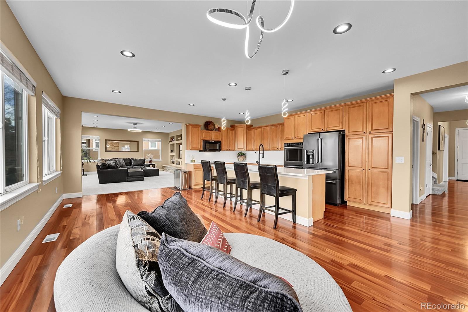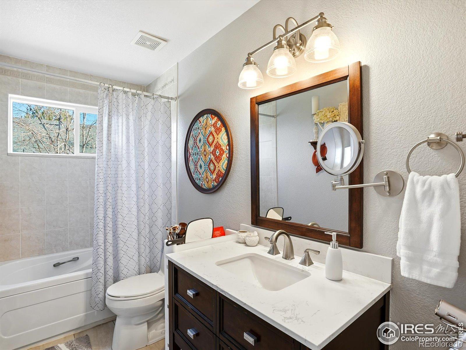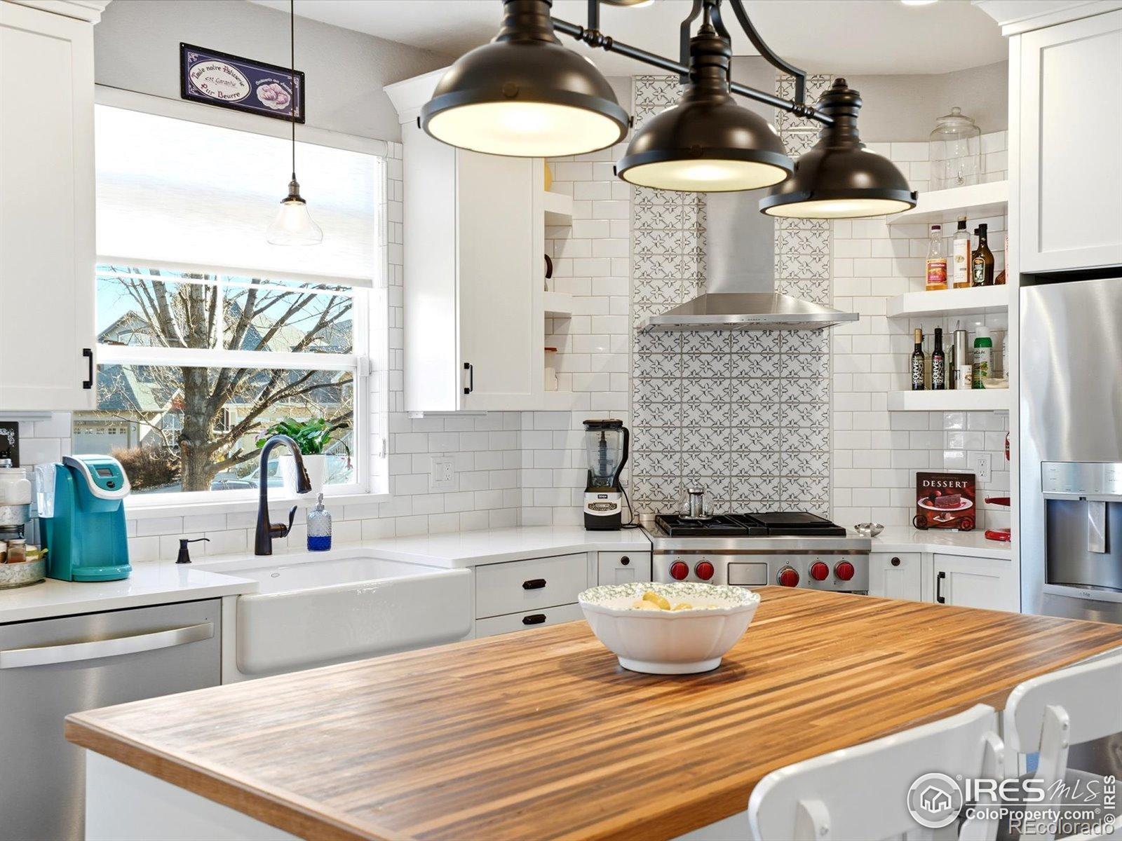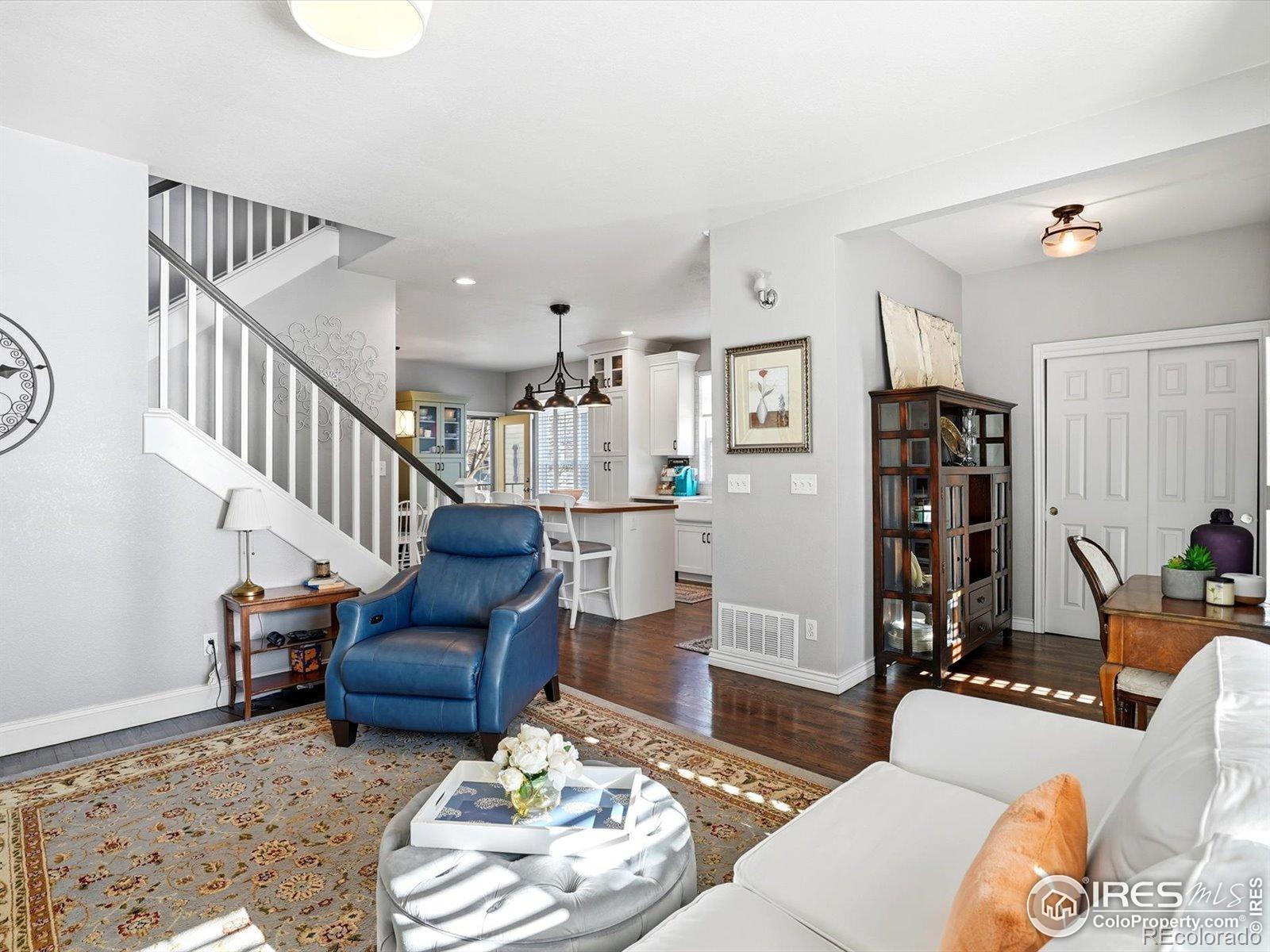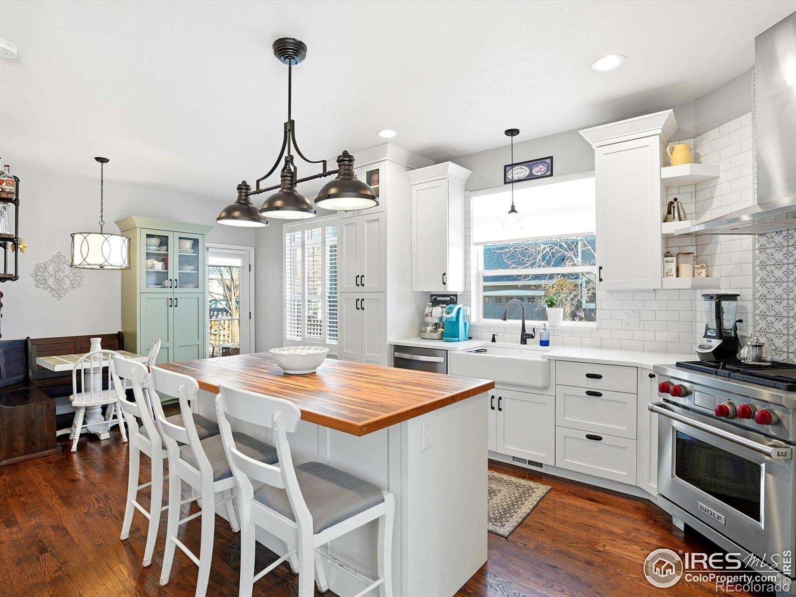This beautifully maintained, light and bright home is more than 75% updated with modern colors,high-end materials,and tasteful decor throughout. Thoughtful upgrades include updated light fixtures and custom-fitted window coverings, with plantation shutters throughout most of the home. Wood floors extend through the main living areas, upstairs, and into the primary bedroom and hallway, creating a warm and cohesive flow.The fully remodeled kitchen (2019) is a standout, featuring custom top-of-the-line cabinetry, quartz countertops, a handcrafted butcher block island, and a premium Wolf gas range. Additional updates include a new refrigerator (2019) dishwasher (2023) furnace and water heater (2020), and a new roof installed in 2018 will provide long-term peace of mind. The home also features high-quality exterior paint and has been exceptionally well cared for.The finished basement offers newer, premium carpet (2021) and includes a bonus bedroom and bathroom-ideal for a mother-in-law suite or a private retreat for teens-along with a dedicated office nook. Upstairs, the spacious primary bathroom features a large walk-in shower, while the second, remodeled bath includes a soaking tub. A third upstairs bedroom works perfectly as a home office or a small bedroom.Outside, mature shade trees in both the front and back yards provide summer privacy, while a custom patio with a built-in fountain creates a relaxing outdoor escape. The location is exceptional: 1/2 block to trails for easy biking access through Longmont and beyond. Property is walkable to restaurants, grocery stores, bars, and a movie theater, and set in a friendly neighborhood with open spaces and a community-owned shaded path along Left Hand Creek. Just minutes to downtown Boulder, Niwot, vibrant downtown Longmont, recreation centers, and yoga studios