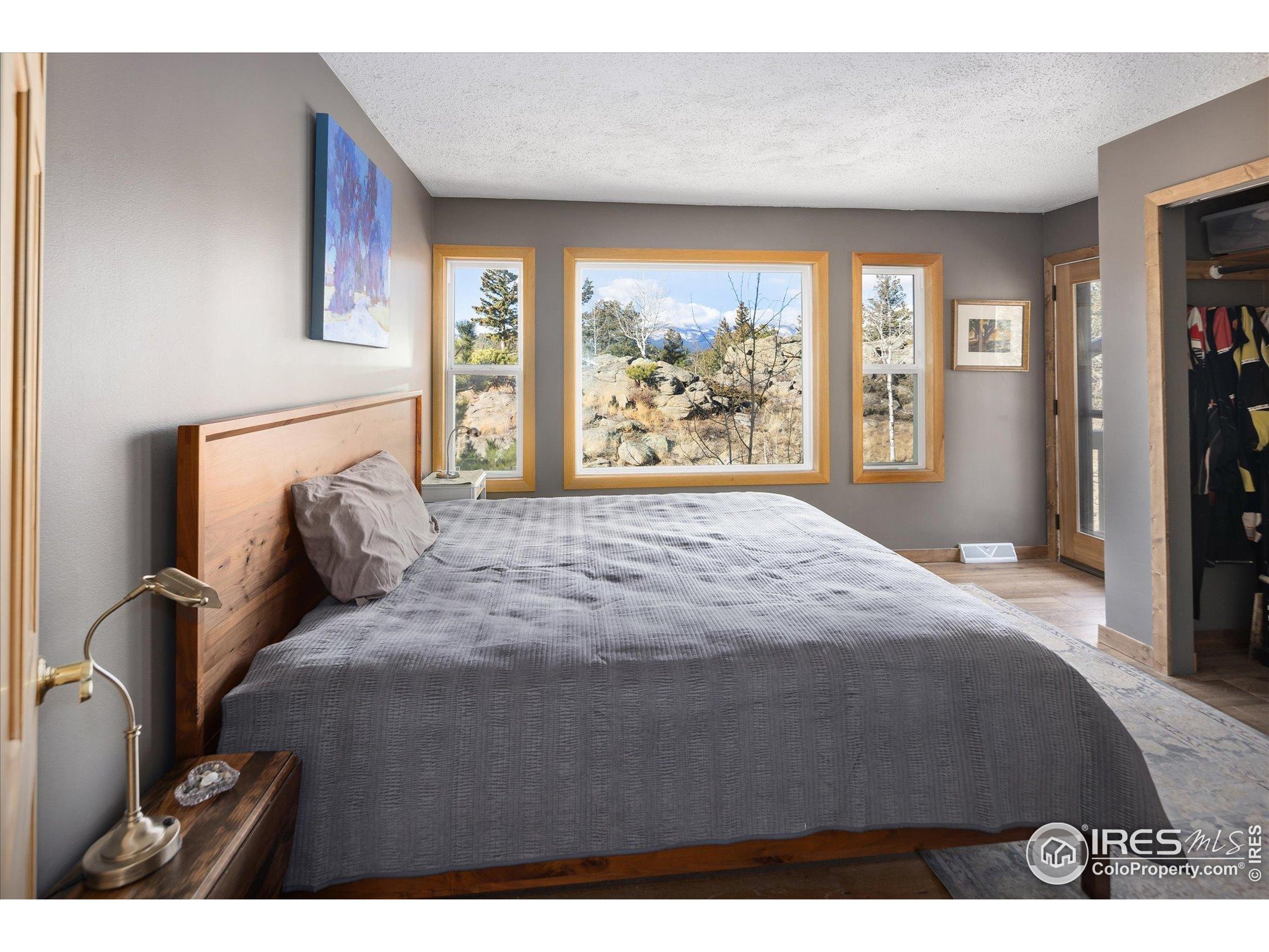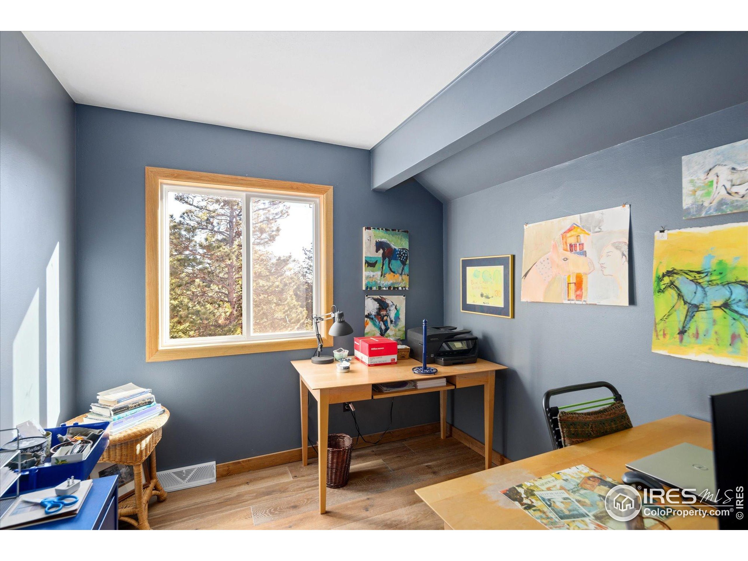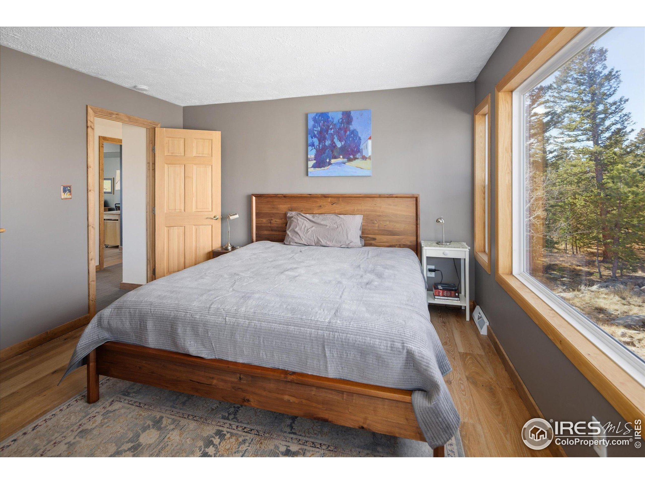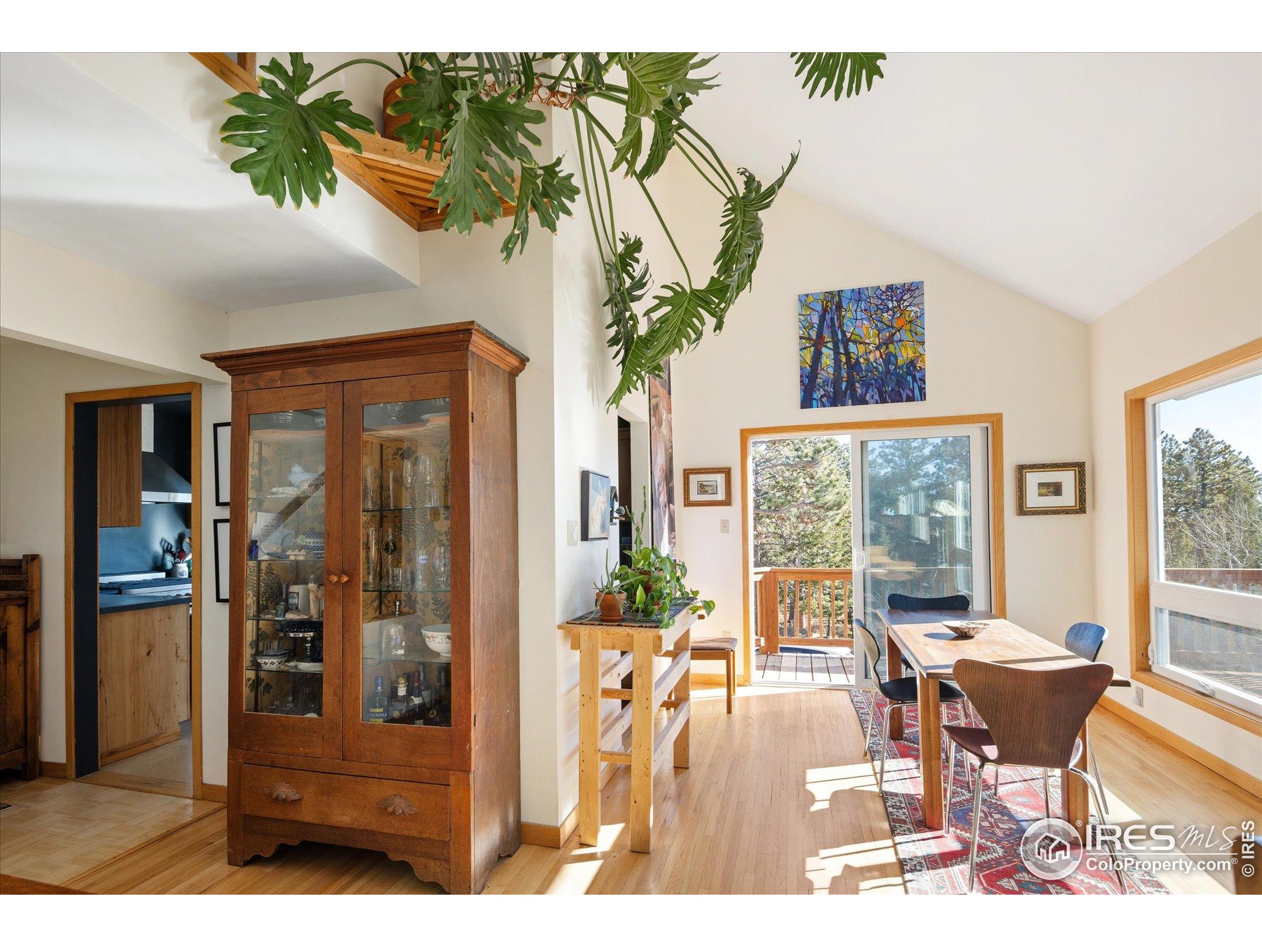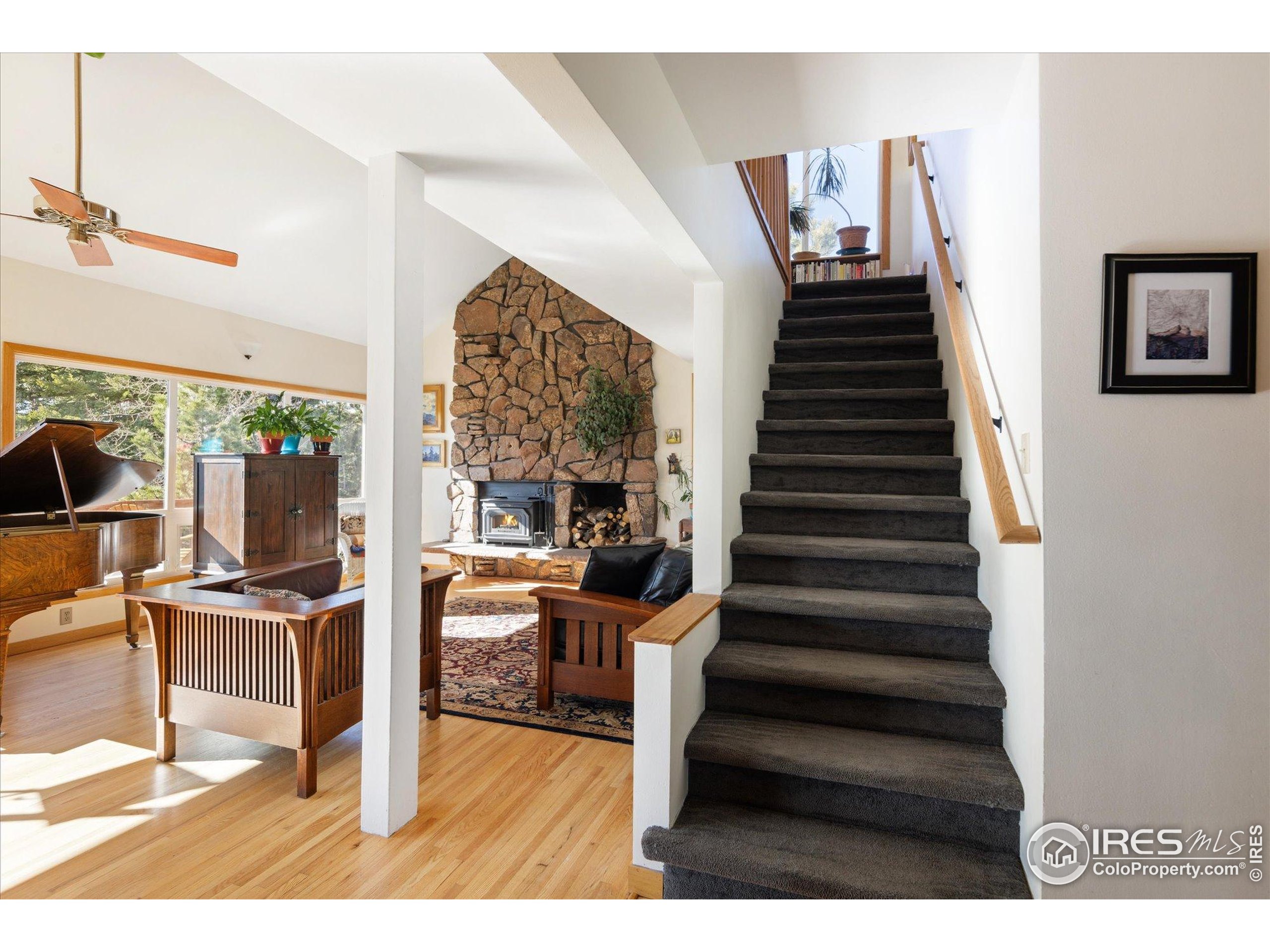 Bathed in natural light and surrounded by mature aspens and towering pines, this inviting mountain retreat offers exceptional privacy and stunning Divide views. Set against dramatic rock formations and backing to a 175-acre homestead, it provides a true Colorado mountain experience just 20 minutes from Boulder. The main level features a bright, window-filled living area with vaulted ceilings, a stone feature wall, and a wood-burning stove. The updated kitchen includes stainless steel appliances-among them a new Samsung refrigerator and new stainless steel hood-and opens to a spacious deck overlooking the landscape. A main-level bedroom offers an en-suite updated 3/4 bath and new luxury vinyl flooring. Upstairs, two bedrooms each enjoy private deck access and share a full bathroom. Wood flooring was added to both bedrooms and the office in 2022, along with new carpet on the stairs and landing. The walkout lower level provides exceptional flexibility with its own entrance, a generous living area with a gas stove, a 3/4 bath, and an additional room for office, guest space, or sleeping area. The level features new luxury vinyl flooring and fresh paint. Additional improvements include a rooftop solar system with transferable lease, a new propane furnace with whole-house humidifier (2022), a recently installed whole-house air-purifying system, and a new well pump (2025). The property offers 3-4 off-street parking spaces, ample storage and closet space, a storage shed, and a new fire-protected firewood shed with metal siding and roof. Tucked at the end of a quiet lane, this one-of-a-kind home offers peaceful mountain living with easy access to skiing, outdoor recreation, and DIA in just over an hour.