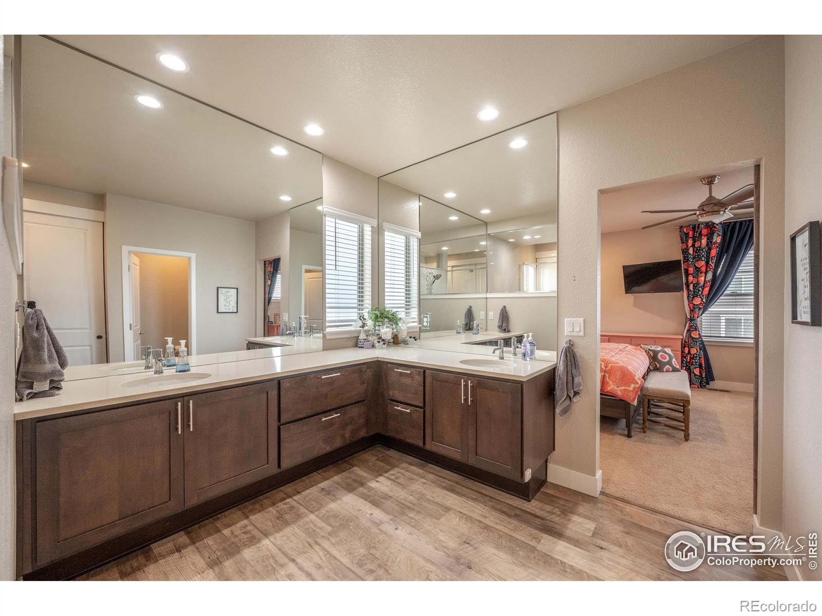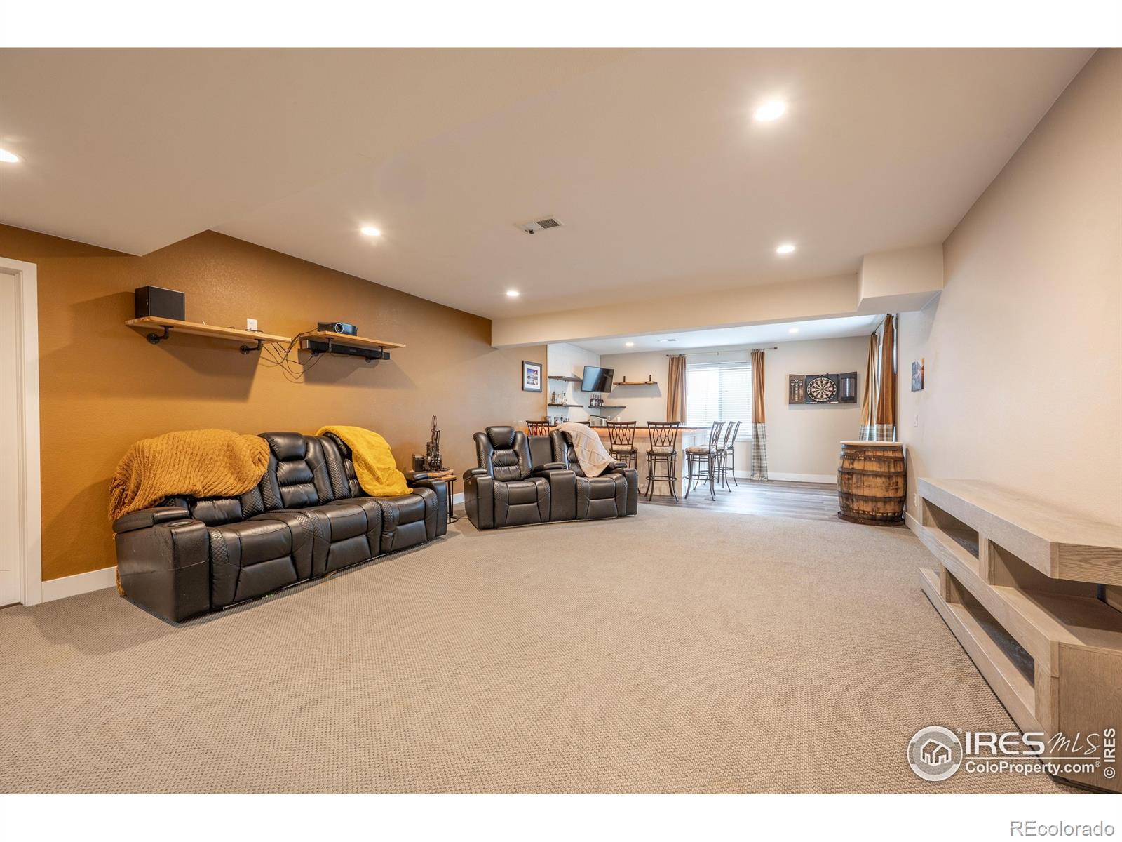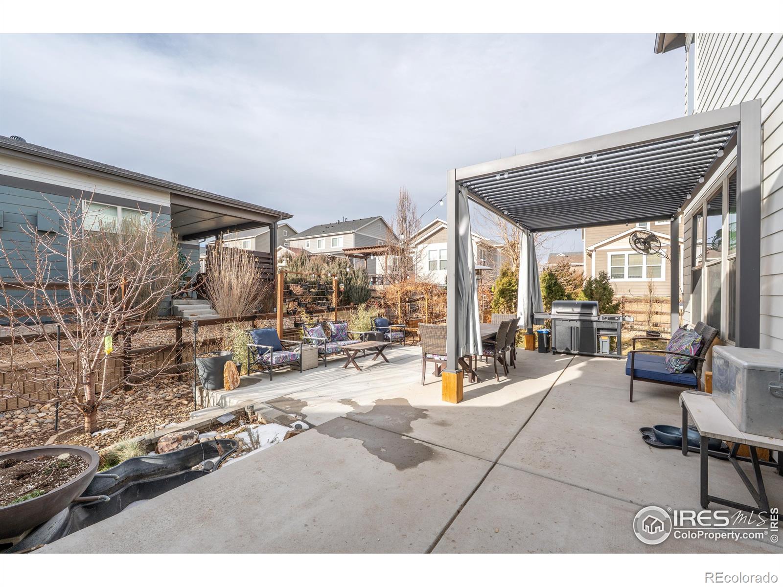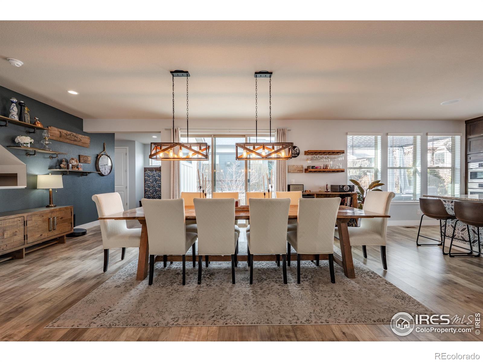 Welcome to 4593 Colorado River Drive in Firestone - a stunning Brookfield Custom built home that blends luxury, space, and effortless entertaining. From the moment you step inside, you'll notice the expansive open-concept layout flooded with natural light, soaring 8' doors, & oversized windows that create an airy, inviting feel throughout. The heart of the home is the stunning chef's kitchen, featuring Bosch and Kenmore Elite appliances, Tharp custom cabinetry, a massive center island, gas cooktop, & double ovens-perfect for hosting everything from casual gatherings to holiday dinners. Full-wall glass patio doors seamlessly connect the interior to a huge partially covered side porch, making indoor-outdoor entertaining a breeze. The main floor also offers a generous private office-ideal for working from home, along with a thoughtfully designed mudroom & extended pantry space off the 3 car garage-perfect for easy grocery drop-offs and everyday organization. The living area is anchored by a modern fireplace, custom walnut mantel & shelving, adding warmth & style. Upstairs, you'll find 3 spacious bedrooms (secondary bedrooms are separated by a wonderful jack & jill bathroom), primary suite is on the back of the home offering comfort & privacy for everyone. Primary Suite is generous with an onsite bathroom that will knock your socks off! The finished basement expands your living space even further with a large family room & fantastic dry bar-ideal for entertaining, guests. 4th bedroom & bathroom are also in the basement, plus two separate storage areas. Outside, enjoy relaxing mornings on the welcoming front porch, & spend evenings in the backyard garden area with a nicely sized yard, perfect for play, pets, or quiet downtime. This Energy Star-rated home is exceptionally well insulated, providing year-round comfort & a quiet interior. Luxury finishes, custom details, & a layout designed for both everyday living & unforgettable entertaining-this home truly has it all.