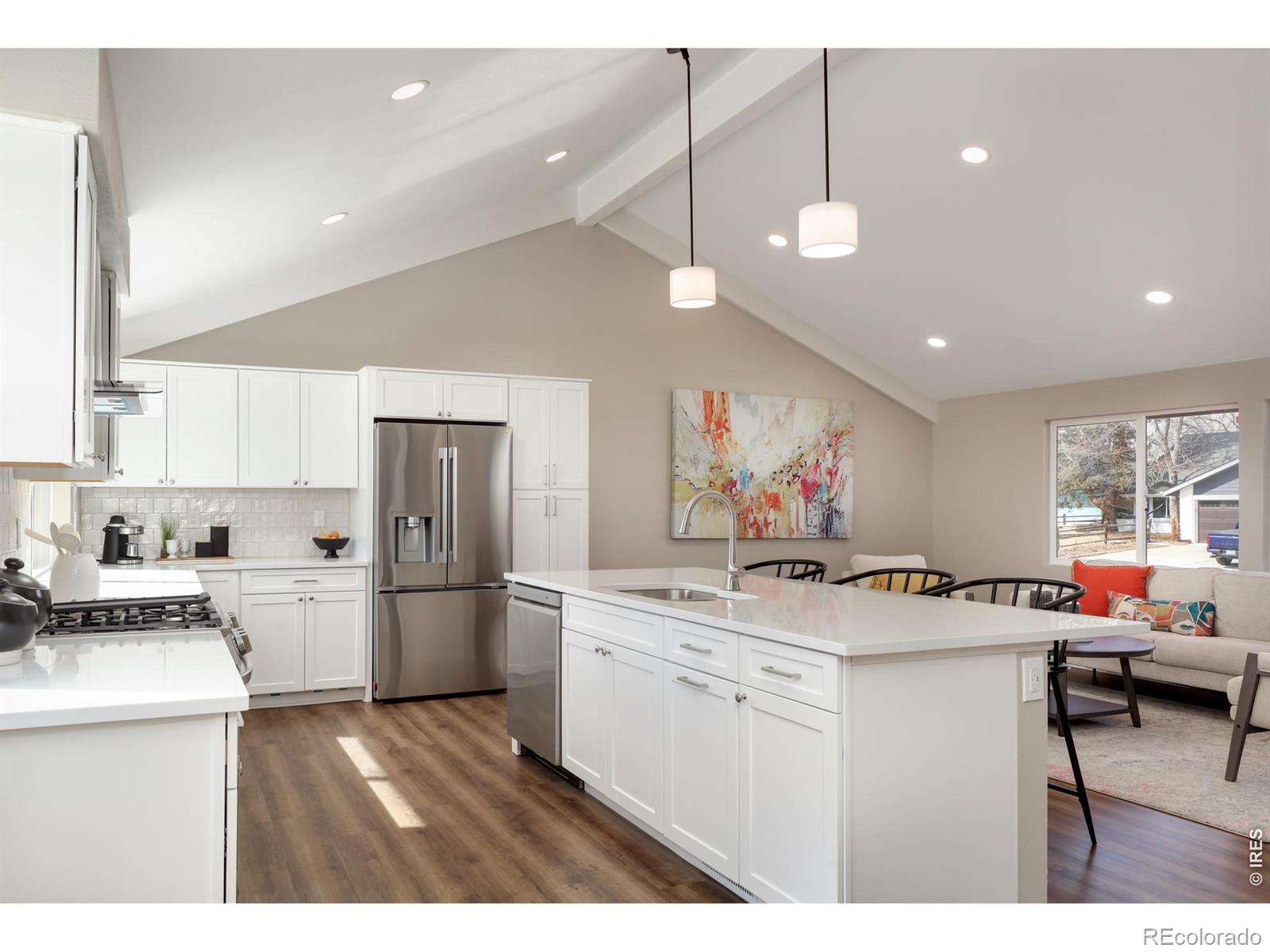 Rare 80-Acre Mountain Ranch Estate on the Little Thompson River. Discover your private sanctuary on this extraordinary property just minutes from Boulder. This beautifully updated 3-bedroom, 2-bathroom single-level home offers an authentic CO ranch lifestyle with breathtaking pano views up and down the valley. An open floor plan features a wood burning stove, renovated kitchen with white cabinets, island, quartz tops, and stainless appliances. Luxury vinyl flooring and fresh modern paint flow throughout. The primary suite includes an three-quarter bath and direct deck access to stunning mtn vistas. Two guest bedrooms share a full bath. The walk-out basement offers an opportunity to add square footage to your desires. Exceptional Investment & Development Opportunity. This property grants remarkable flexibility for the visionary buyer. Build your custom dream home on the pristine 40 acres along the Little Thompson River while keeping the existing beautifully updated home as a lucrative investment property. Alternatively, consider selling the existing home with 40 acres and create your ultimate riverside estate on the adjoining riverfront acreage. The possibilities for wealth building and legacy creation are truly extraordinary. This exceptional property is accessed thru a private gate and features a wrap-around covered deck that brings the panoramic views into your everyday life. Horse enthusiasts will appreciate the three-stall barn and ample acreage for equestrian pursuits. With 80 acres of pristine Colorado land, the possibilities are endless-whether you're seeking a working ranch, recreational paradise, or peaceful estate living. Nestled in the desirable Lyons area, you'll enjoy mountain tranquility while remaining accessible to town amenities and the vibrant Front Range community. Once in a lifetime opportunity to own a turn-key mtn property with river frontage, horse facilities, investment potential, and 360 degree views that will take your breath away.