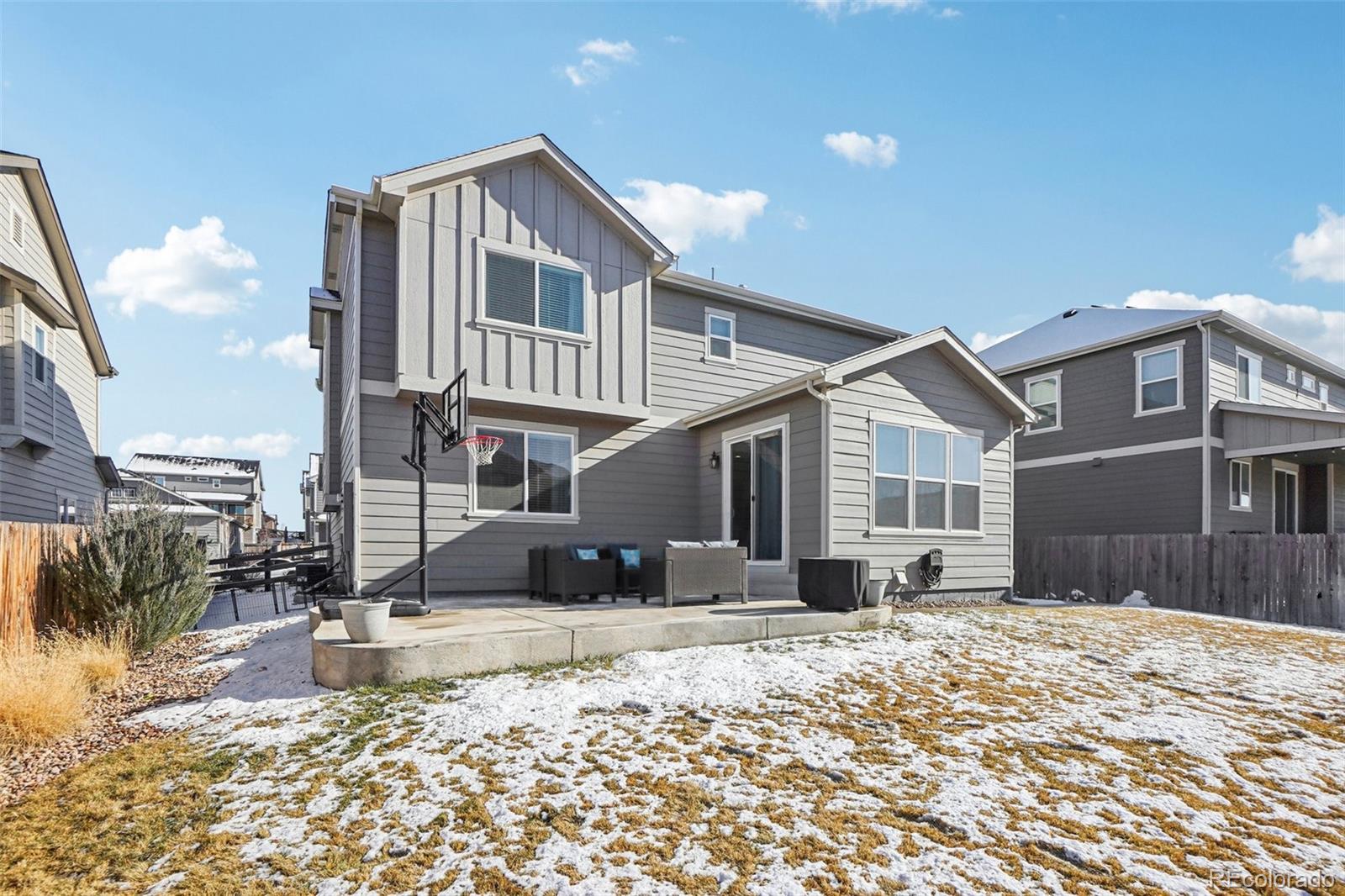 Beautiful Hemingway model showcasing an extended layout and abundant natural light. This 2-story home includes 4 bedrooms plus an upper-level loft, a convenient main-floor office, and an unfinished basement that’s ready for your personal touch. An expansive kitchen with large center island and walk-in pantry flows into the bright, southwest-facing dining/sunroom and family room. Durable LVP plank flooring on the main, 8-foot doors, and dual-zone heating and cooling enhance both style and efficiency. The primary suite offers a spacious room and an impressive walk-in closet. With front and back sprinklers, lower property taxes than many nearby neighborhoods, and the anticipated Rocky Vista High School scheduled to open in 2027, this home delivers comfort, value, and a promising future.