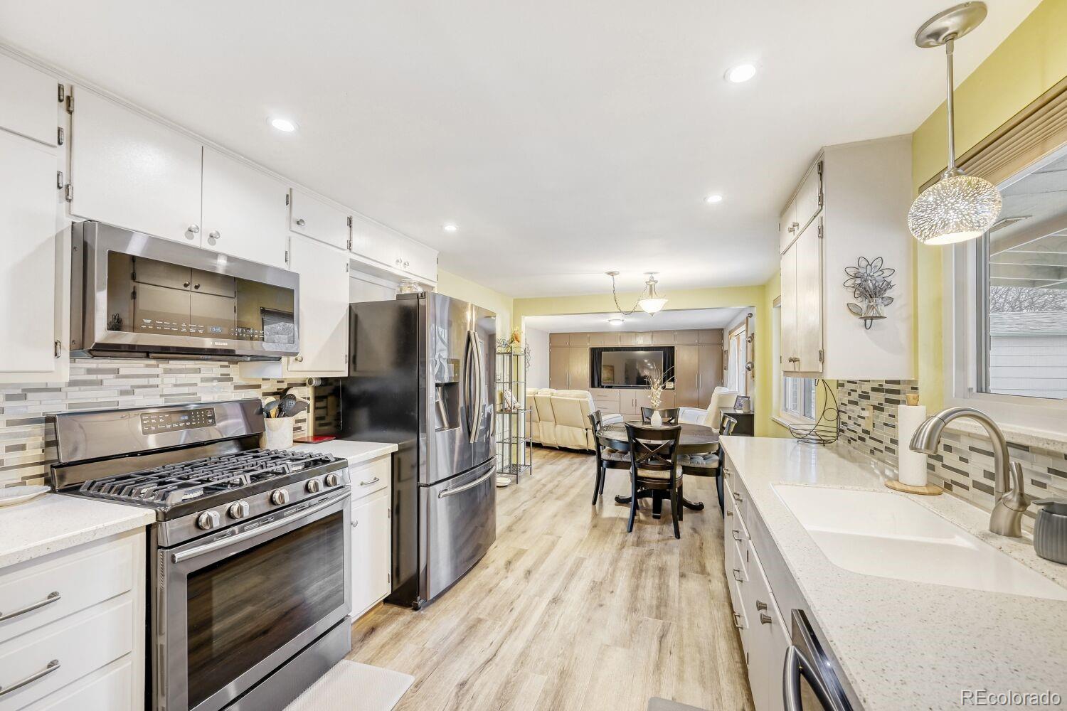 Beautifully remodeled 3-bedroom, 2-bath home in a fantastic Longmont location! This move-in-ready property features an open living room with wood floors, abundant natural light, and a warm, welcoming feel. The updated eat-in kitchen offers stainless steel appliances, a gas range, generous counter space, and ample cabinetry-perfect for everyday living and entertaining. The inviting family room includes built-ins for added storage and functionality.Both bathrooms have been tastefully updated with modern finishes and walk-in showers. Additional highlights include newer AC, a newer water heater, a newer roof, durable wood and LVT flooring, and a 2-car attached garage. The low-maintenance front yard adds to the home's easy-living appeal.Step outside to an amazing backyard retreat featuring a covered patio, hot tub (included), raised garden boxes, and a shed with power, ideal for storage, hobbies, or a workshop. A wonderful home offering comfort, style, and outdoor living in a great Longmont location.