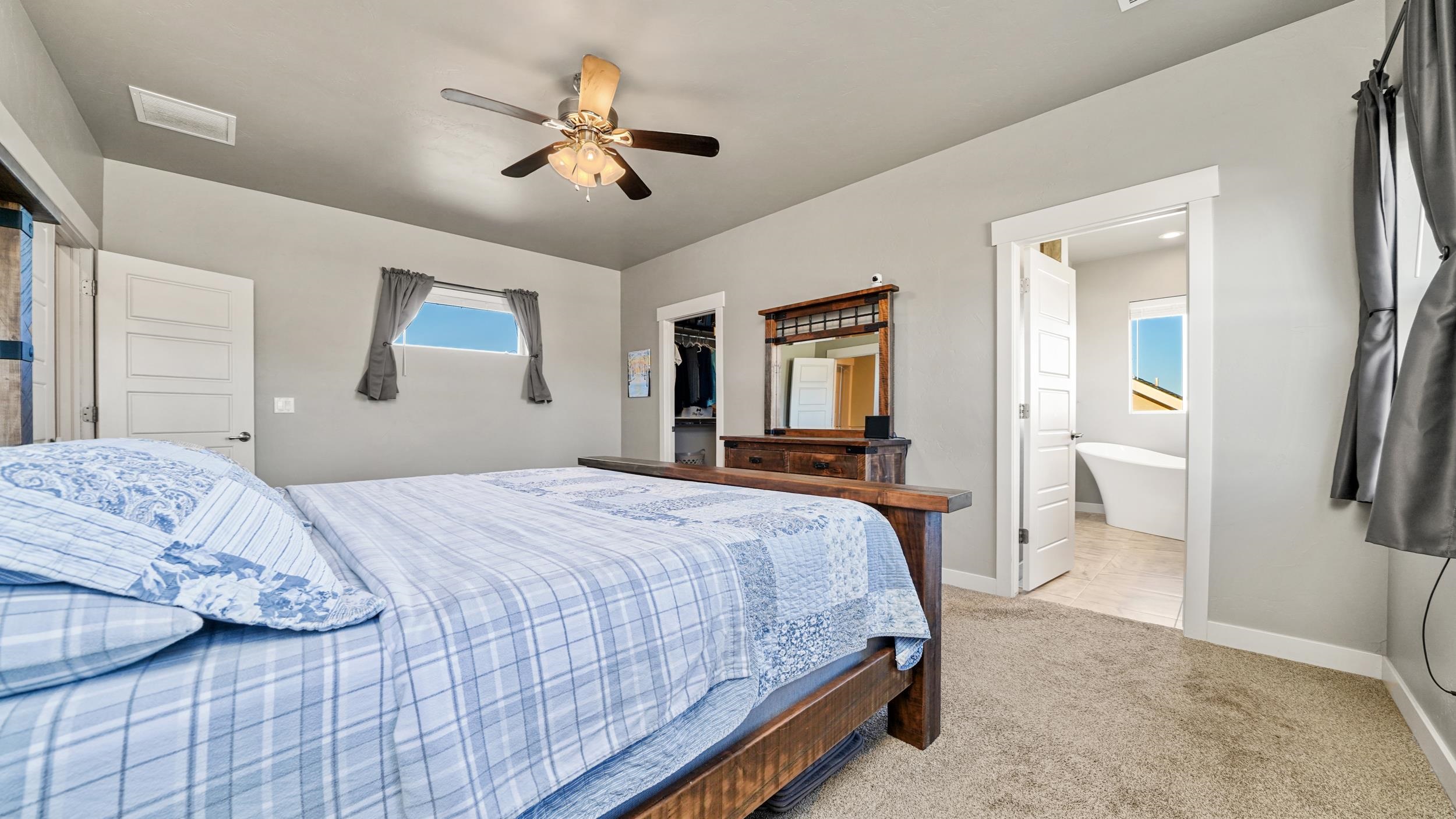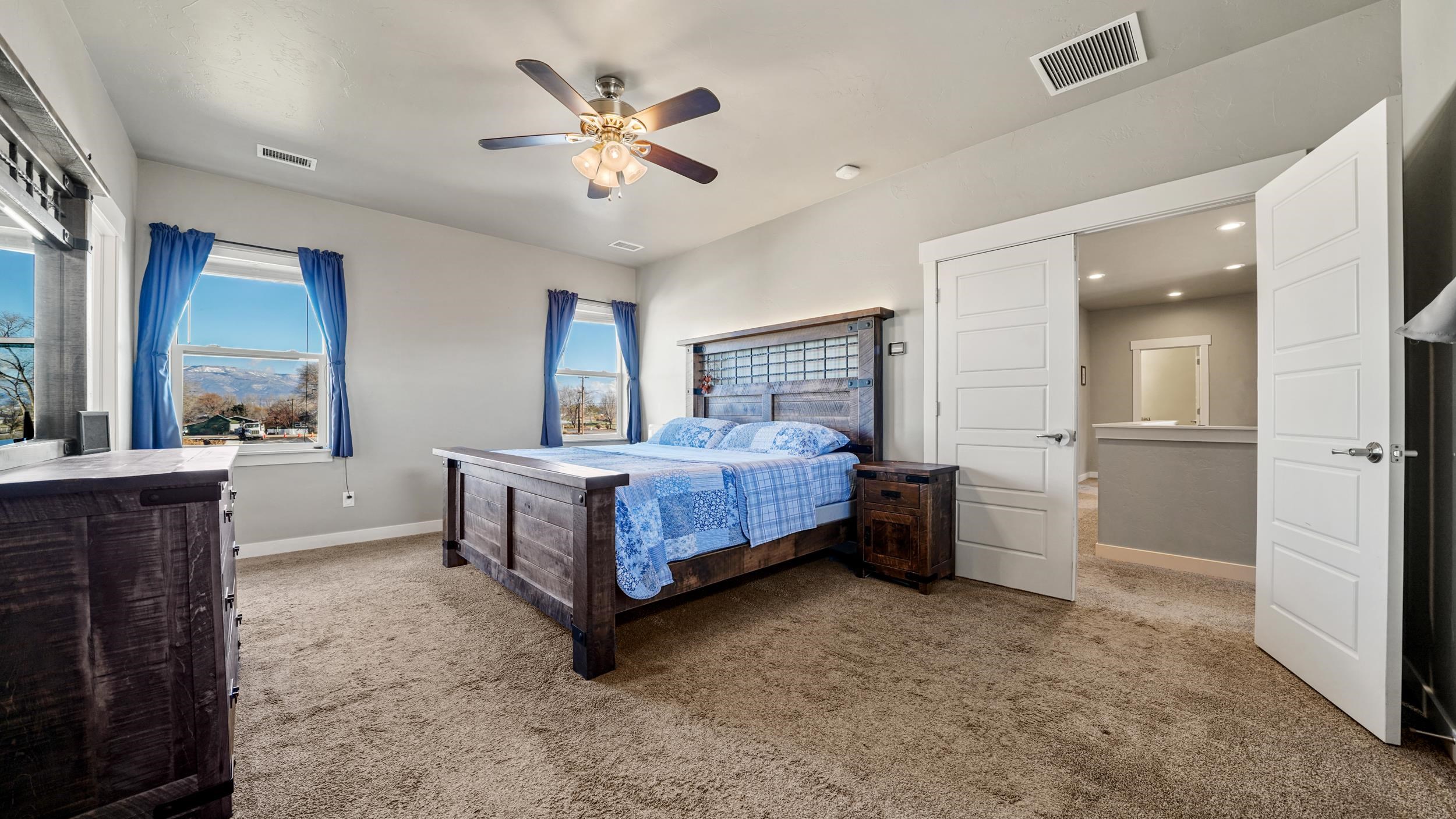 Beautifully designed 2-story home in Chipeta Estates offering 2,500 sq ft on a large, landscaped lot in a convenient Orchard Mesa location. The main level features an open-concept layout with a spacious kitchen showcasing a large island and great storage. The space flows into the living room with a gas fireplace and also features a formal dining area. A main-floor guest suite with its own ¾ bath also works perfectly as a home office. Upstairs you’ll find four generous bedrooms on the same level, including a spacious primary suite with an oversized walk-in closet and spa-like bath with a freestanding soaking tub and large shower. The second floor also features a dedicated laundry room. Enjoy the expansive back patio ideal for shaded summer evenings, along with a fully fenced yard, mature landscaping, and automatic sprinklers. Additional highlights include a 3-car garage, gated RV parking and a large storage area under the stairs. The location offers easy access to local schools, shopping and Hwy 50. A fantastic blend of space, comfort, and convenience and it's ready to welcome its next owner.