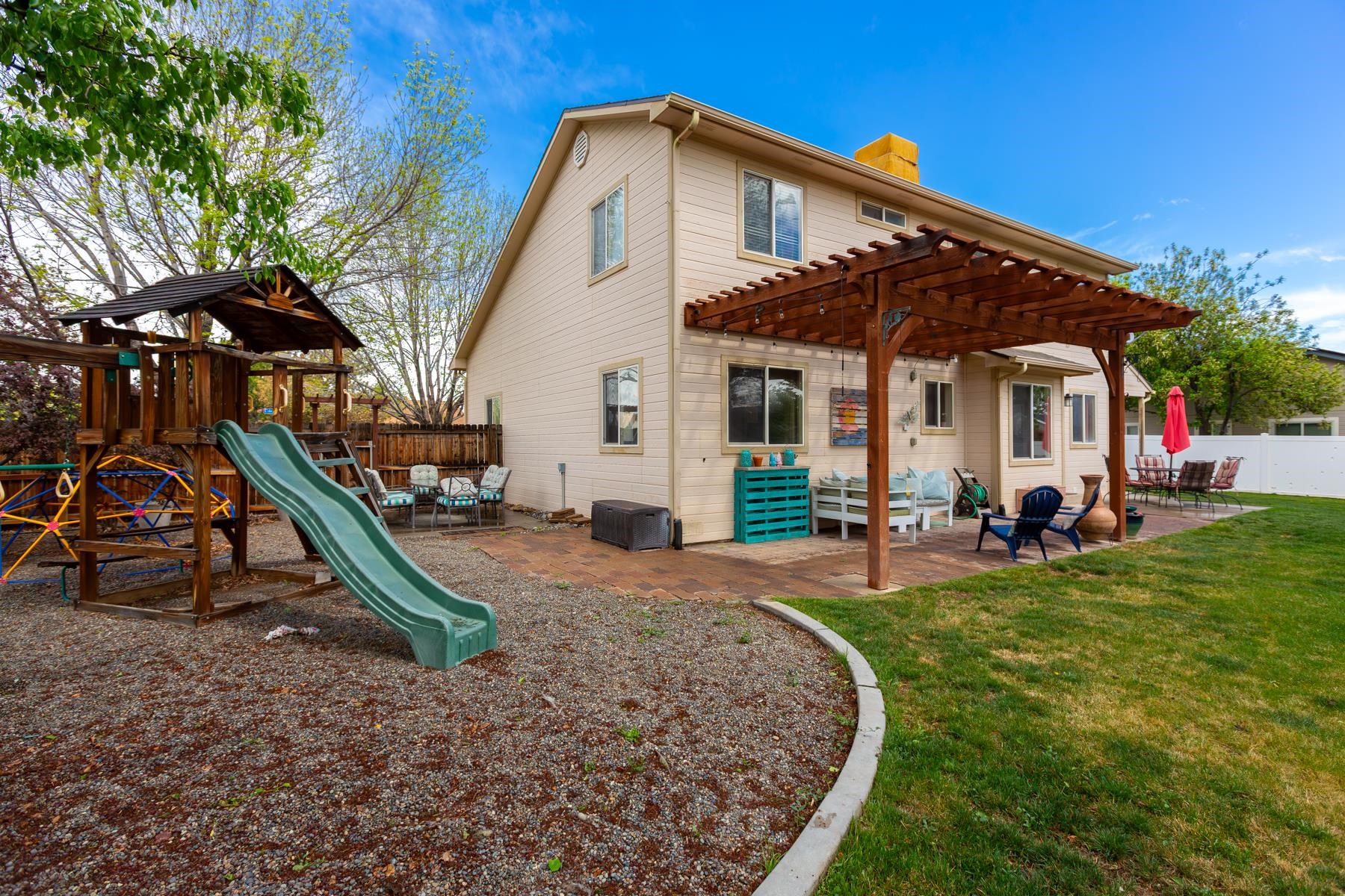 Nestled in the prestigious Granite Falls subdivision, this custom-built ranch-style home offers the perfect blend of elegance, comfort, and convenience. Situated on a spacious .28-acre xeriscaped corner lot, the property captures stunning views of the Colorado National Monument while providing privacy and charm. Inside, you’ll find 4 bedrooms, 2 bathrooms, and a thoughtfully designed floor plan that balances open living with comfort. The home boasts engineered hardwood floors, upgraded appliances, and tasteful finishes throughout, making it truly move-in ready. The oversized 3-car garage ensures plenty of room for vehicles, storage, or hobbies, while the fantastic covered patio invites you to relax or entertain year-round. Don’t miss the opportunity to call this immaculate property your next home!