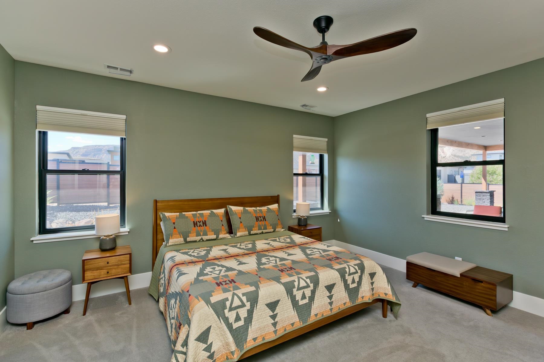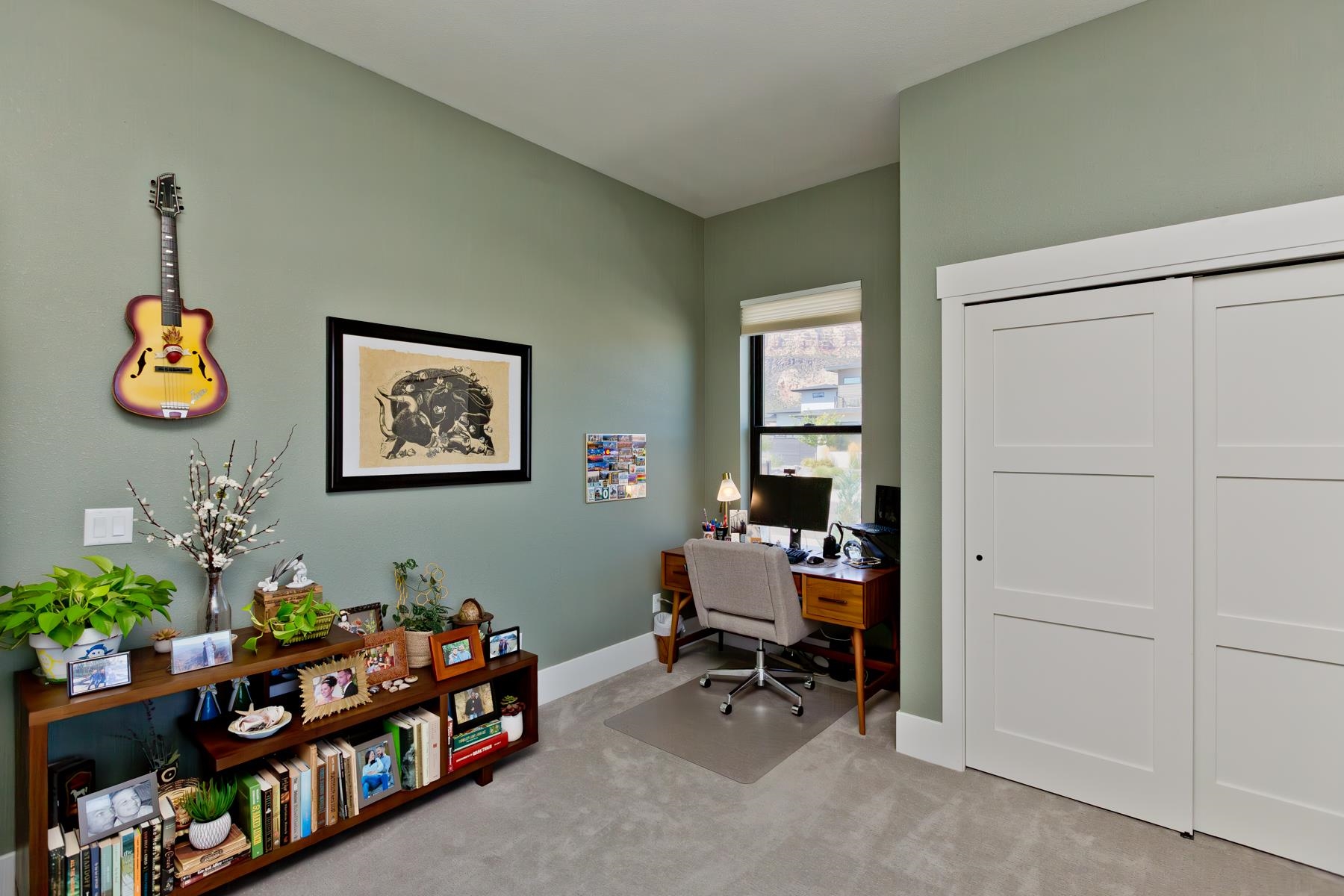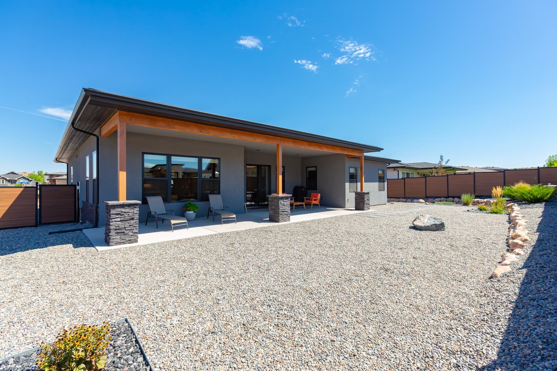 Welcome to the prestigious Pearl Estate Subdivision in the North West Area with some of the most stunning custom homes already built. And now we present this amazing Craftsman style home situated on 2 acres with open space on the North side where horses roam. Enjoy the great views of the Monument along with the country setting. This home will live up to your expectations, starting with the wrought iron entrance door that brings luxury and security, as it enhances the architectural style. High pitched roof with decorative wood trusses and lots of stone accents, the huge circle drive, and the colored stamped concrete steps catches your eye from the moment you drive up. Once you enter this home, you will capture the most inviting, softly appointed kitchen that flows openly to the living room. This is a Must See! Primary bedroom is totally out on its own with 3 additional bedrooms with baths on opposite side. Formal dining room, 12 to 13' high ceilings, wood beam accents, full wall stone fireplace, upgraded appliances, and an amazing huge covered patio with stamped concrete and tongue and groove ceiling. 1 share of GVIC irrigation water. Just too much to mention here, so come see for yourself!